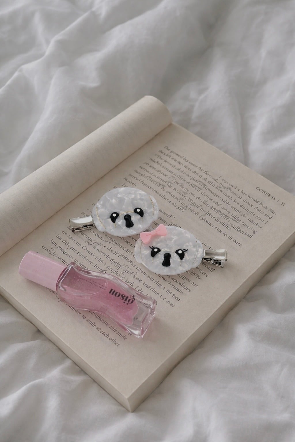 2. 白ペキ前髪クリップ(2個セット)